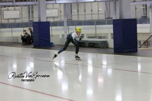 Cameron skating at the BC Long Track Championships in Fort St John. Photo credit: Raistlin Van Spronsen