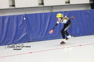 Rebecca skating at the BC Long Track Championships in Fort St John. Photo credit: Raistlin Van Spronsen
